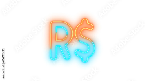 Neon brazilian real sign symbol icon brown cyan color glowing with transparent background