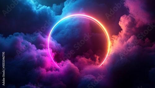 Neon Circle in a Colorful Cloud
