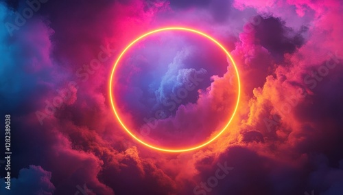 Neon Circle in a Vibrant Cloudscape