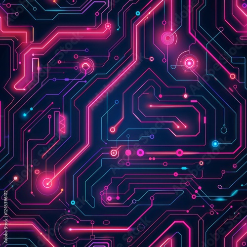 Neon Circuitry: A mesmerizing abstract pattern of neon pink and blue lines intertwining over a dark background, reminiscent of a high-tech circuit board.