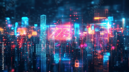 Neon cityscape digital transformation, data flow, future tech, website banner