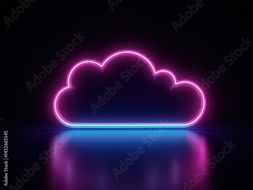 Neon cloud with blue and pink lights. The cloud is lit up and is glowing in the dark neon