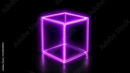 Neon Cube with Glowing Lines on Dark Background for Futuristic Art