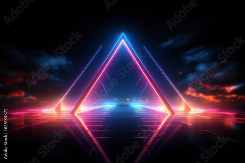 Neon Dreamscape Abstract Panoramic Background with Glowing 3D Render and Ultraviolet Spectrum