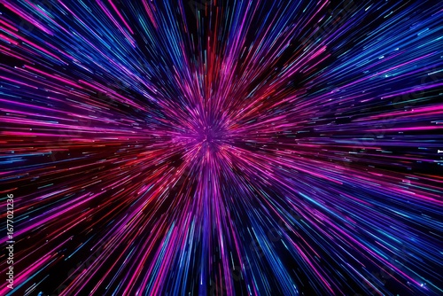 Neon fiber optic lines form an abstract texture background with abstract speed lines symbolizing technology