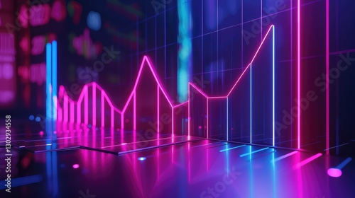 Neon Financial Growth Chart in Futuristic Virtual Environment
