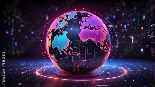 Neon Globe Encompassed by AI Algorithms and Digital Data Streams, Neon Globe Surrounded by AI Algorithms and Digital Streams,