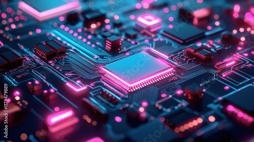 Neon Glow: A Close-Up of a Futuristic Circuit Board