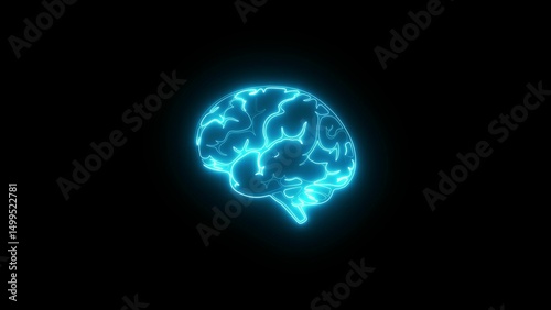 Neon glowing brain icon on dark background – futuristic intelligence symbol for AI, mental health, neuroscience, creativity, digital thinking, machine learning. x ray of human brain