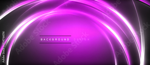 Neon glowing circle rays, light round lines in the dark, planet style neon wave lines. Energetic electric concept design for wallpaper, banner, background