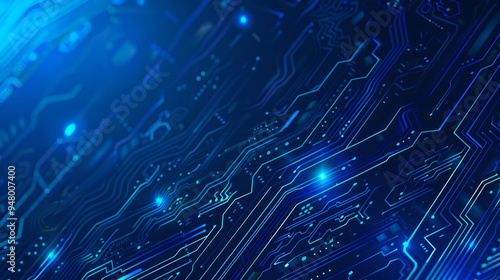 Neon glowing digital technology circuit board in computer. Futuristic glowing bright blue color. Abstract connection concept presentation background Communication wireframe laser pattern illustration