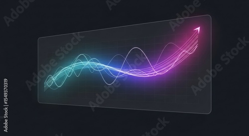 Neon glowing financial graph showing growth with arrow rising. Business success chart for stock market data visualization and investment presentation.
