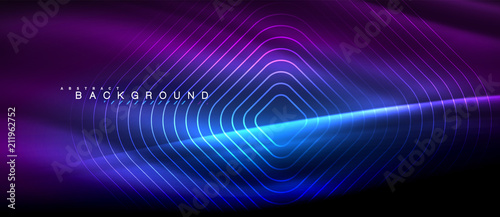 Neon glowing lines, magic energy space light concept, abstract background wallpaper design