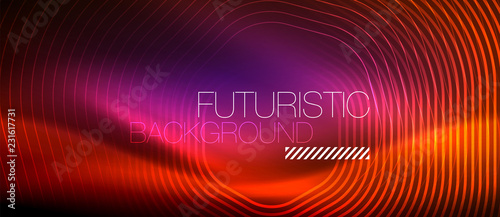 Neon glowing lines, magic energy space light concept, abstract background wallpaper design