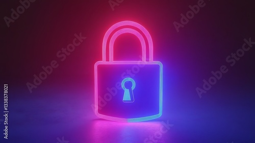 Neon glowing padlock symbolizing security and protection in a modern digital environment