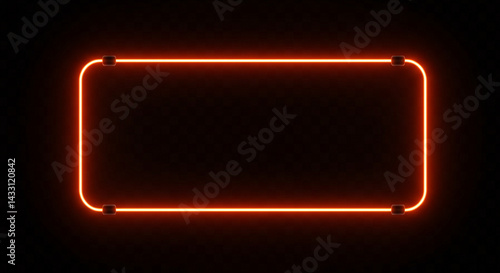 Neon Glowing Rectangle Frame isolated on transparent background. Futuristic modern border. Empty sparkling techno backdrop. banner. Orange neon sign. Neon mockup template for your design. PNG