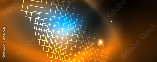 Neon glowing techno lines, hi-tech futuristic abstract background template, vector