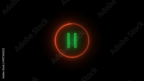 neon glowing video Pause button icon with red circle pause button in circle, video pause or play button sign icon isolated with a black background.
