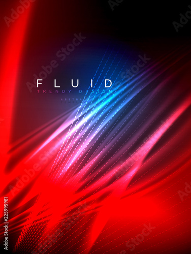 Neon glowing wave, magic energy and light motion background. Vector illustration