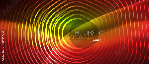 Neon glowing wave, magic energy and light motion background. Vector wallpaper template