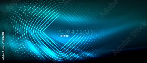 Neon glowing wave, magic energy and light motion background. Wallpaper template, hi-tech future concept