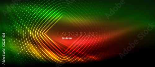 Neon glowing wave, magic energy and light motion background. Wallpaper template, hi-tech future concept