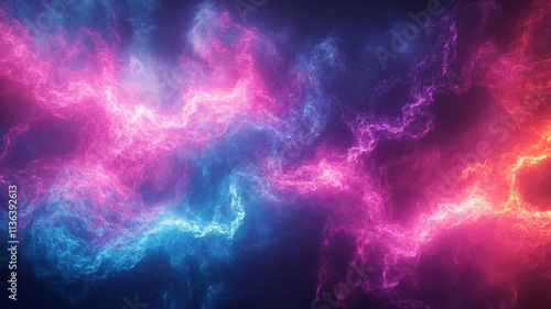 Neon glows of magenta and cyan collide, forming an electrifying colorful background