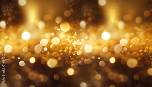 Neon Gold Yellow Abstract Sparkles Bokeh Background.