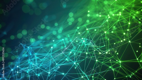 Neon green and blue plexus connections, designed with text space on the left for a dynamic layout