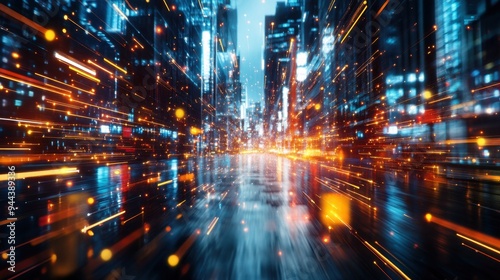 Neon Grid Cyberpunk Landscape in Virtual Reality - Futuristic High-Tech Network Visualization with Immersive Aesthetics