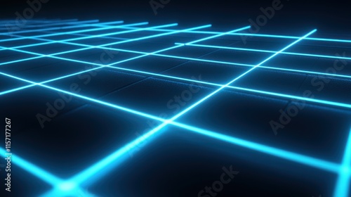 Neon Grid Lines Blue Glow Dark Background Digital Art