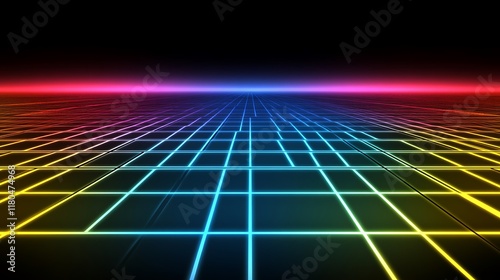 Neon Grid Lines Form a Vibrant Colorful Plane