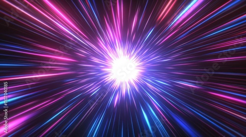 Neon Hyper Warp Space: Abstract Flight in Retro Tunnel - 3D Illustration