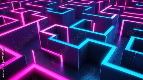 Neon Labyrinth, an immersive maze with vibrant glowing walls and intricate pathways guiding exploration and adventure