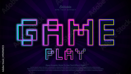 Neon light 3d editable text effect, blox game play words theme.