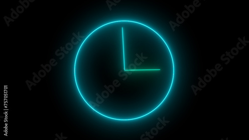 Neon light clock icon illustration background