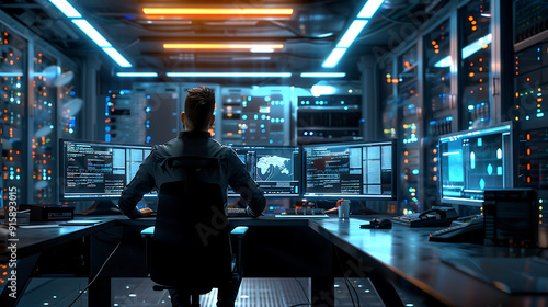 Neon light cloud computing futuristic technology and cloud storage illustration embodies network technologies cyberspace, showcasing a futuristic server in isometric perspective, dark background.