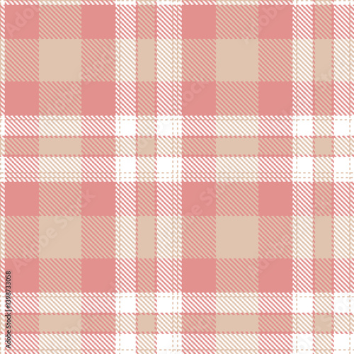 Neon light peach Tartan patterns fabric texture. Elegant Pastel white Seamless Tartan