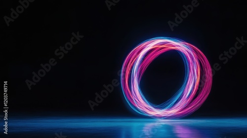 Neon light ring with colorful motion trail on dark background