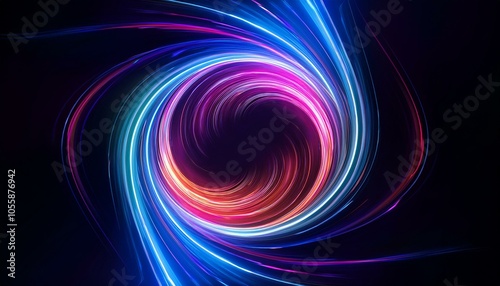 Neon light swirl with vibrant colors on dark background, concept of energy and motion, Ai generative.