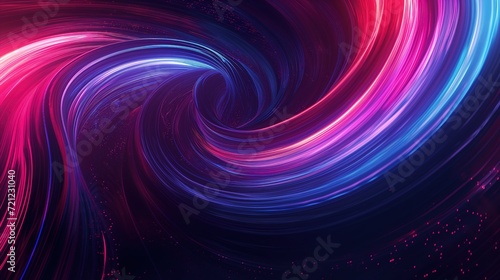 Neon lighting lines and waves in purple and blue background. Colorful glowing energy flow swirls background. Generative AI.