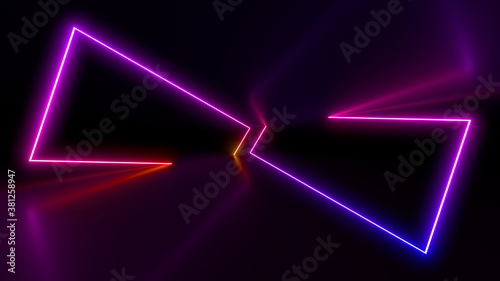 Neon lights on a black background. Reflections on the floor. 3d rendering image.