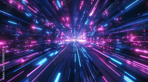 Neon Lightspeed Digital Corridor Through Cyberspace