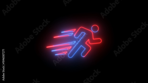 Neon line fast run icon. running neon sign appear in center. Walking people symbol icon. Health, Activity, and Speed for Sports, Training, and Fitness Signage in a Vibrant Graphic Design