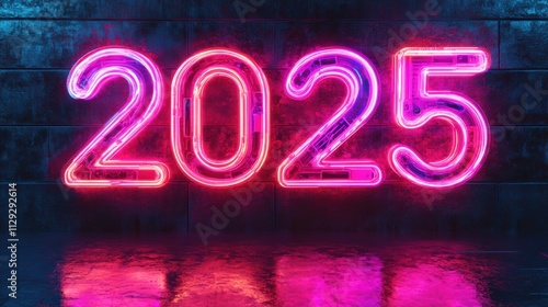 Neon numbers "2025" glowing vibrantly against a dark textured background, creating a futuristic and bold visual statement