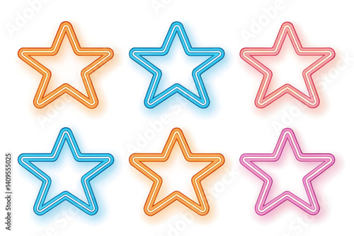 Neon Outline Stars in Grid Layout – Colorful Vector Design on White Background