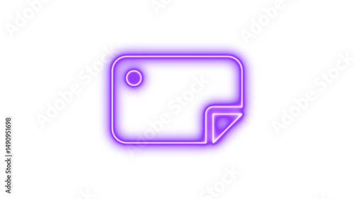 Neon Photo Icon with Corner Fold, Neon tarp glow with transparent background
