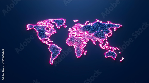 Neon Pink Networked World Map with Digital Lines and Glow Effect