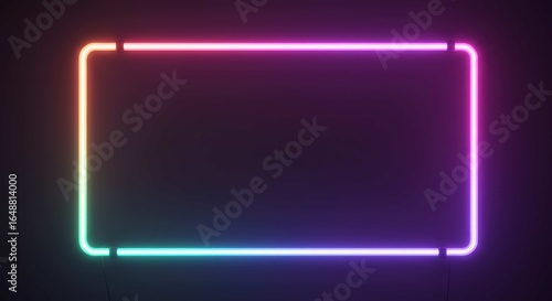 Neon rectangle frame with rounded corners glows in pink blue and purple.
