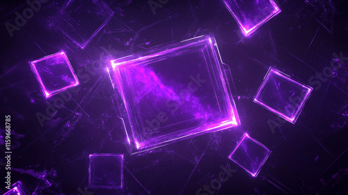 Neon rectangular and square frame with light glowing effect. Realistic vector illustration set of purple futuristic door or magic portal. Line led luminous cyber border on dark transparent background.